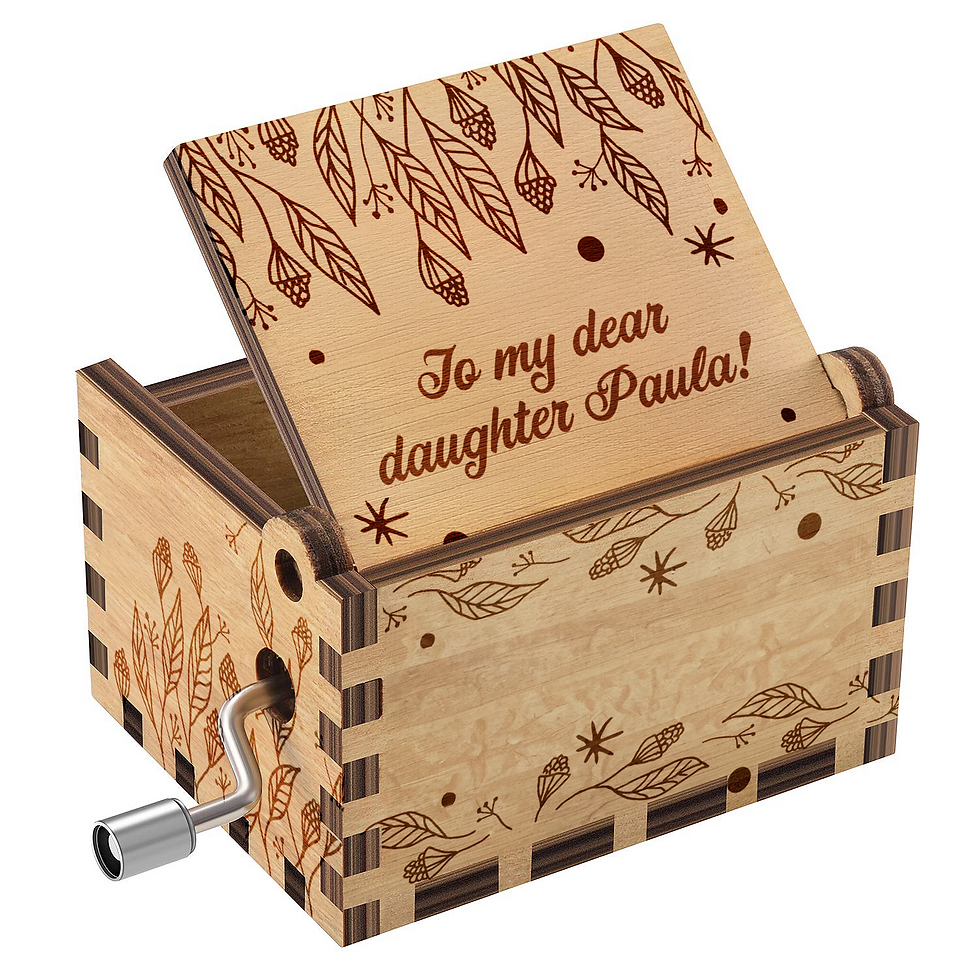 Scopri un livello più profondo di personalizzazione con i nostri carillon artigianali in legno, dotati di due distinti spazi per l’incisione dei messaggi.